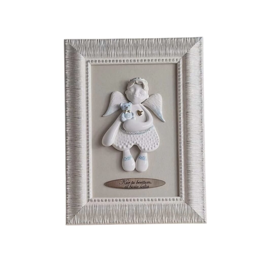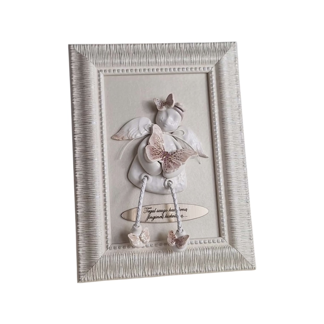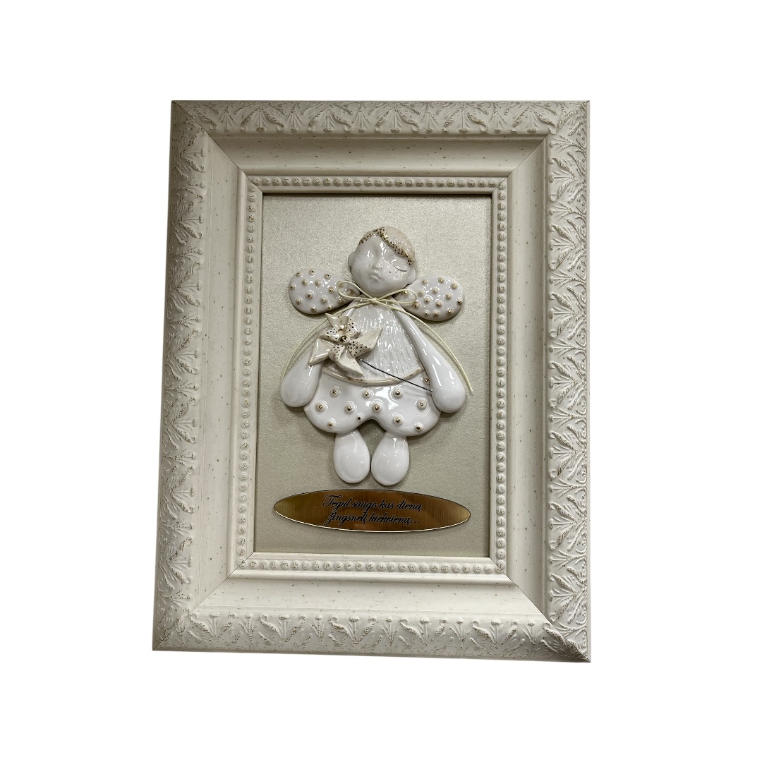 Rankų darbo rėmeliai, dekoruoti įspūdingais angeliukais – puiki dovanos idėja kūdikio gimimui, Krikštynų ar Pirmosios Komunijos proga, o taip pat gimtadieniui ar kitomis progomis.