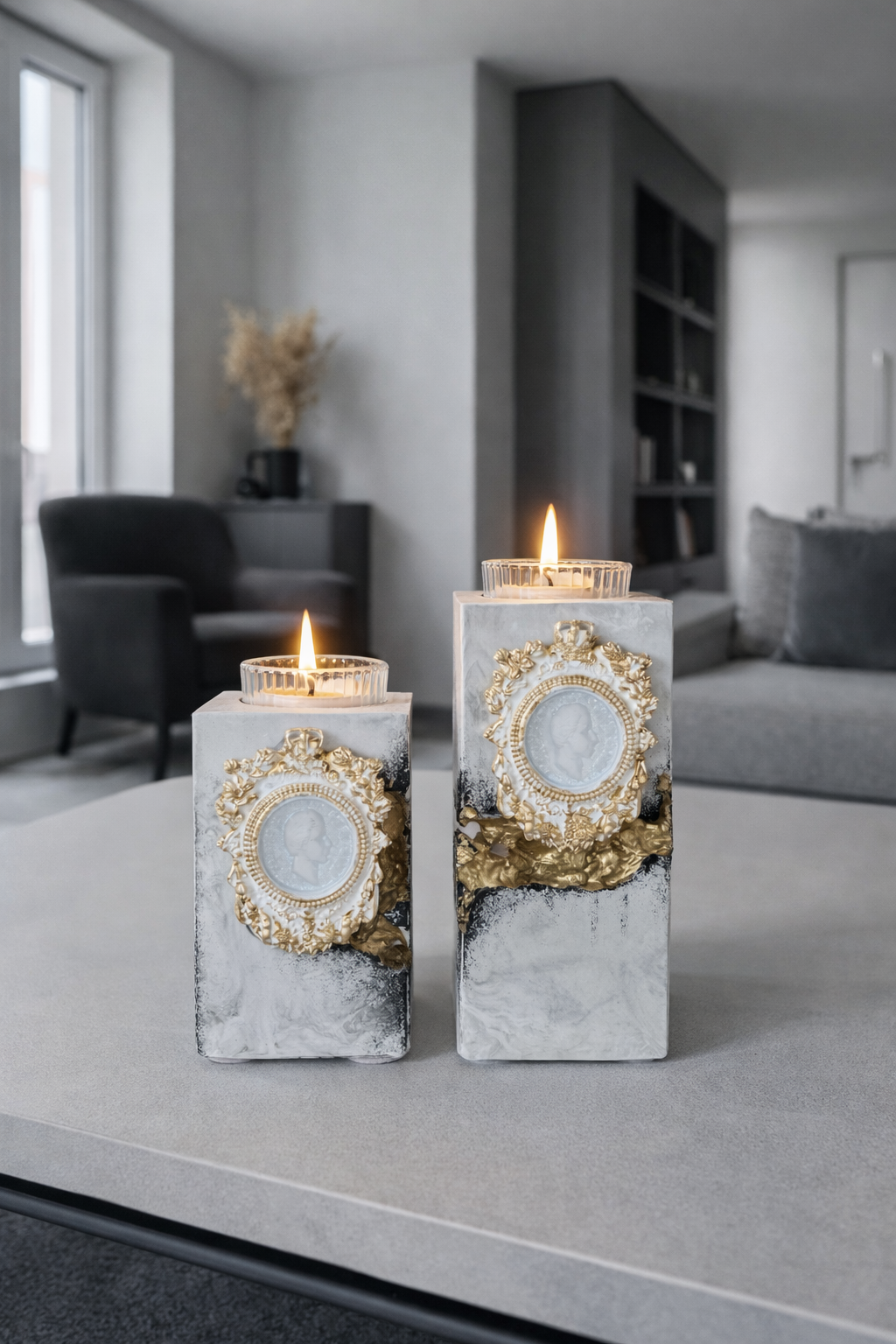 Įspūdinga retro stiliaus žvakidė, naudojama arbatinėms žvakutėms talpinti.